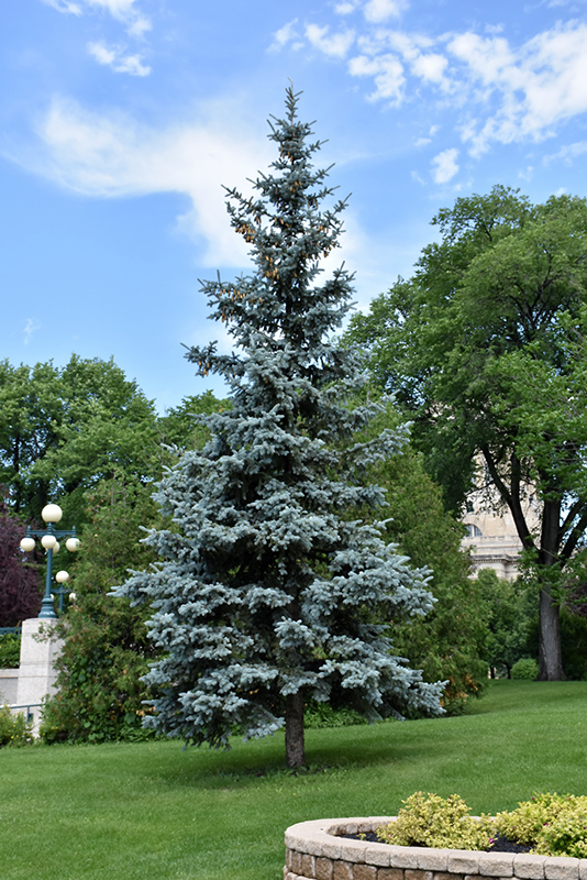 Blue Colorado Spruce is a dense evergreen tree with a strong central leader and a distinctive and refined pyramidal form. Its average texture blends into the landscape, but can be balanced by one or two finer or coarser trees or shrubs for an effective composition.