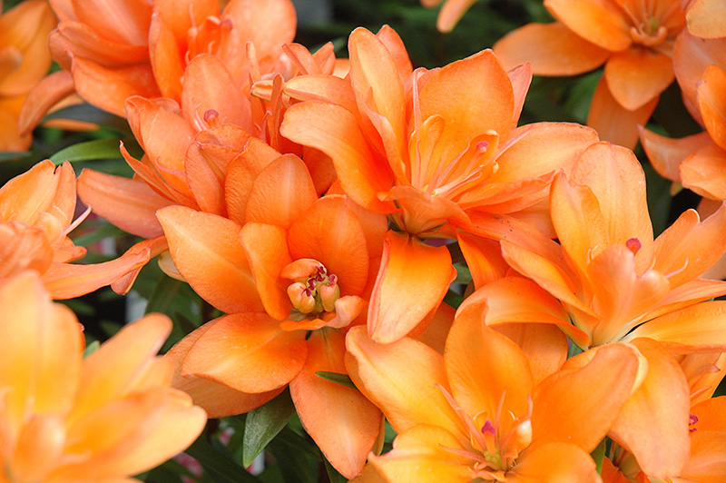 Lily Looks™ Tiny Double You Lily features bold double orange trumpet-shaped flowers at the ends of the stems in early summer. The flowers are excellent for cutting. Its narrow leaves remain green in colour throughout the season.