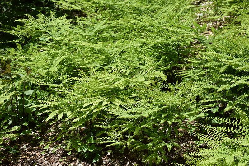 Northern Maidenhair Fern is primarily valued in the garden for its cascading habit of growth. Its crinkled ferny compound leaves are light green in colour. As an added bonus, the foliage turns a gorgeous gold in the fall. The black stems are very colorful and add to the overall interest of the plant.