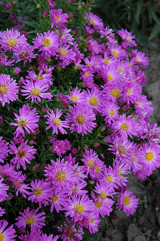 Rose Beauty Aster will grow to be about 3 feet tall at maturity, with a spread of 24 inches. It tends to be leggy, with a typical clearance of 1 foot from the ground, and should be underplanted with lower-growing perennials. The flower stalks can be weak and so it may require staking in exposed sites or excessively rich soils. It grows at a medium rate, and under ideal conditions can be expected to live for approximately 10 years. As an herbaceous perennial, this plant will usually die back to the crown each winter, and will regrow from the base each spring. Be careful not to disturb the crown in late winter when it may not be readily seen!
