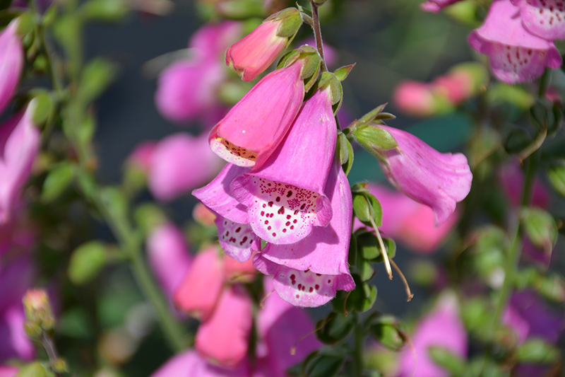 Pink Panther® Foxglove will grow to be about 22 inches tall at maturity extending to 30 inches tall with the flowers, with a spread of 22 inches. When grown in masses or used as a bedding plant, individual plants should be spaced approximately 18 inches apart. It tends to be leggy, with a typical clearance of 1 foot from the ground, and should be underplanted with lower-growing perennials. Although it's not a true annual, this fast-growing plant can be expected to behave as an annual in our climate if left outdoors over the winter, usually needing replacement the following year. As such, gardeners should take into consideration that it will perform differently than it would in its native habitat.