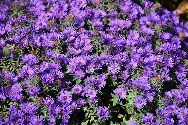 A mounded selection that is stunning during early to mid fall; full, vibrant purple flowers with gold centers bloom over dark green foliage; beautiful in borders, containers, or fresh cut arrangements