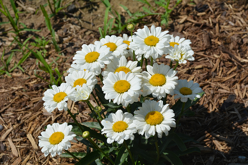 An outstanding Shasta daisy producing brilliant, snow white flowers with rounded, wide petals and golden centers; a beautiful addition to gardens or borders when massed; blooms throughout the summer