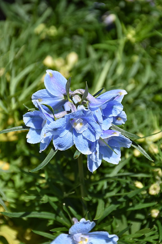 Hunky Dory&Trade; Sky Blue Delphinium is a fine choice for the garden, but it is also a good selection for planting in outdoor pots and containers. With its upright habit of growth, it is best suited for use as a 'thriller' in the 'spiller-thriller-filler' container combination; plant it near the center of the pot, surrounded by smaller plants and those that spill over the edges. Note that when growing plants in outdoor containers and baskets, they may require more frequent waterings than they would in the yard or garden. Be aware that in our climate, most plants cannot be expected to survive the winter if left in containers outdoors, and this plant is no exception. Contact our experts for more information on how to protect it over the winter months.